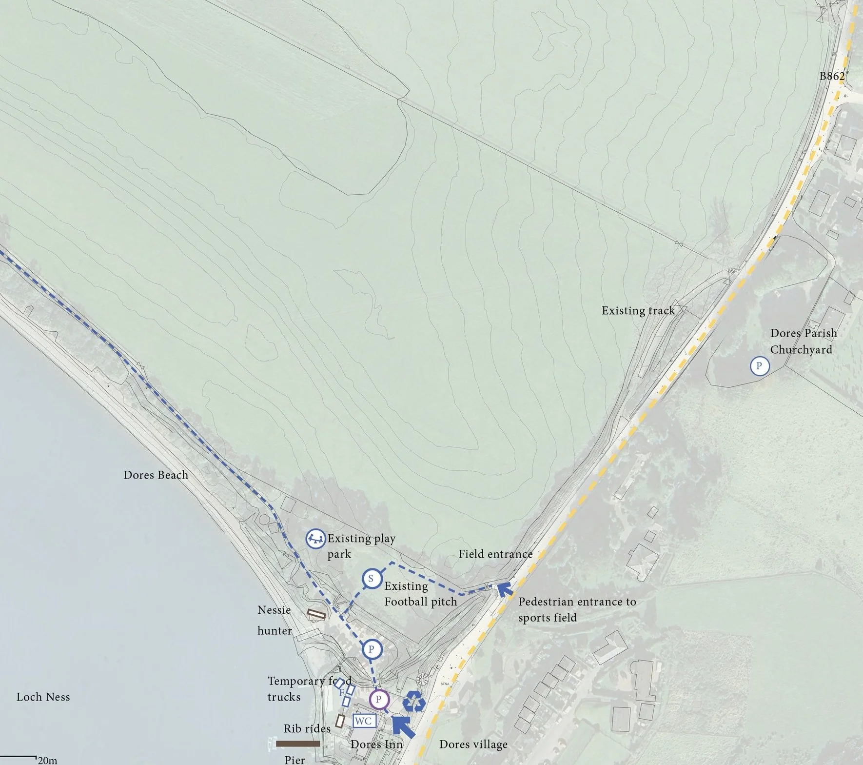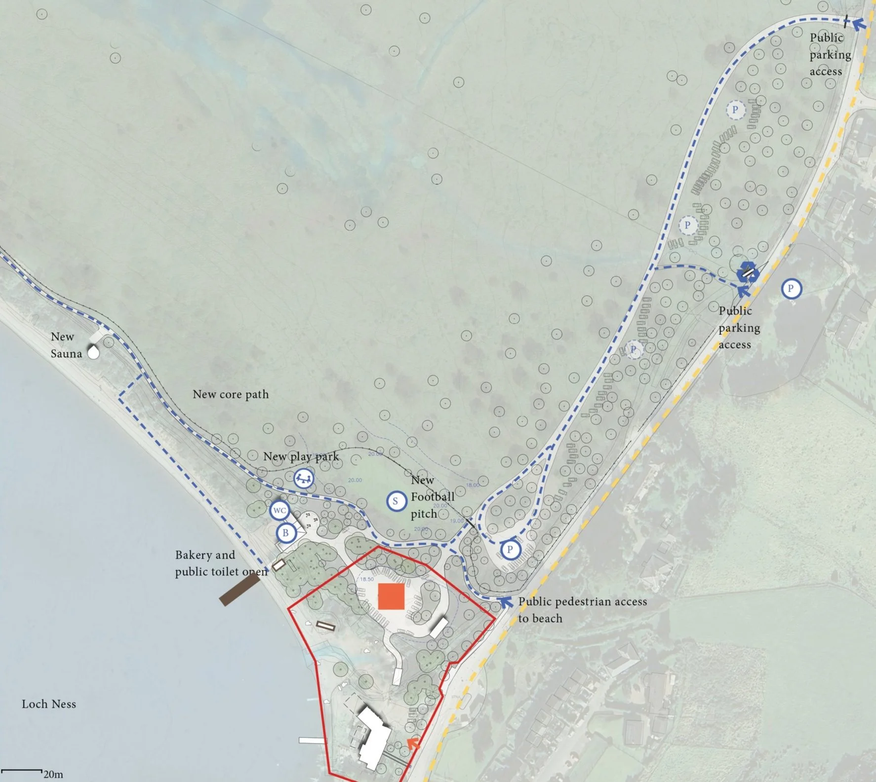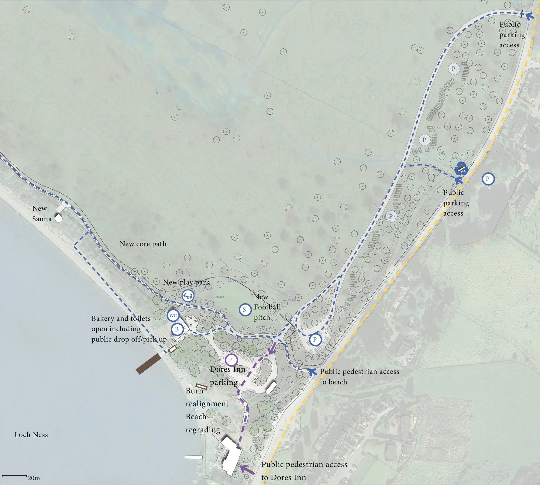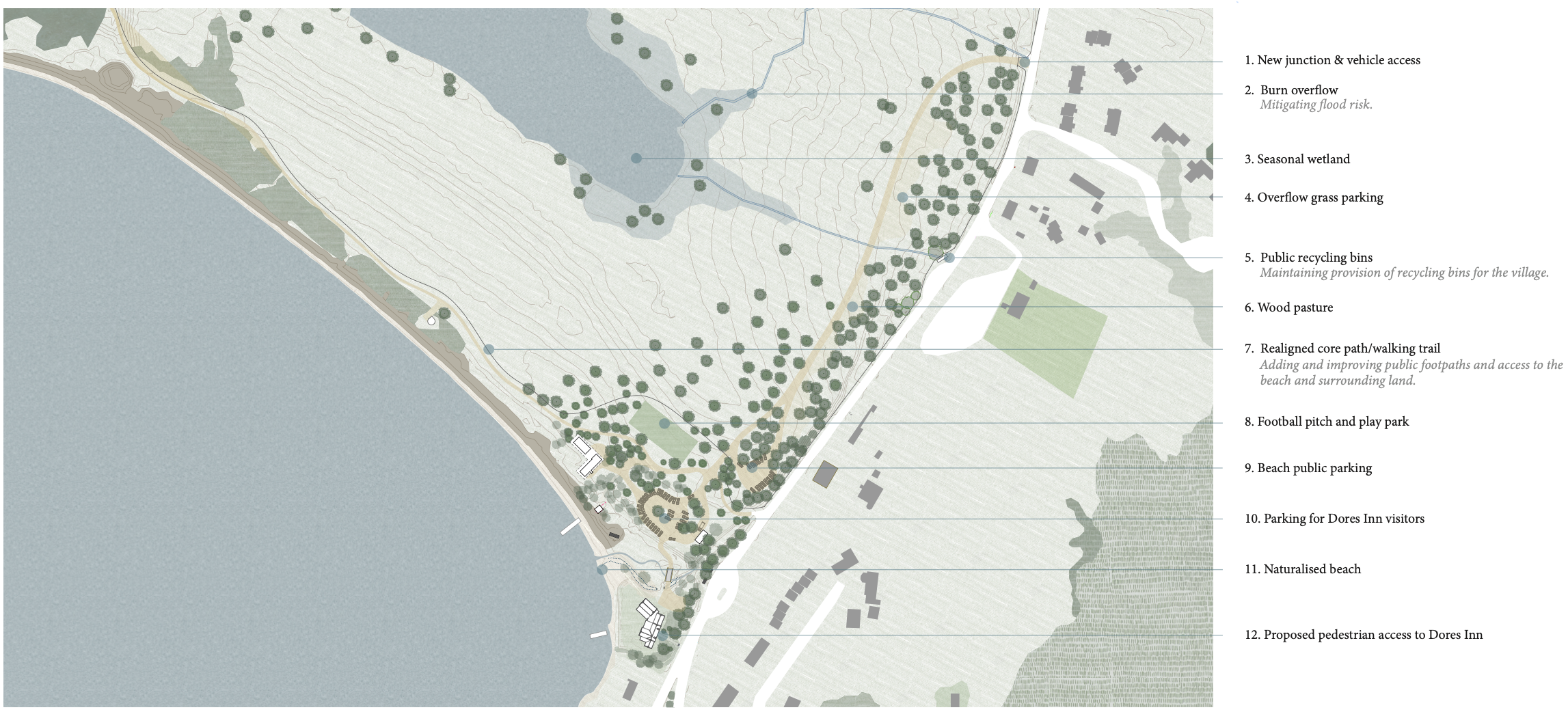 WildLand and our collaborative design time are delighted to share the emerging proposals for the Dores Inn and beach and look forward to hearing your views. The design of the project is at an early stage and refinements are still being made. Our proposals for the site are shown below. We welcome your comments and questions about the proposals which you can send here. The deadline for comments is 11th July 2025.